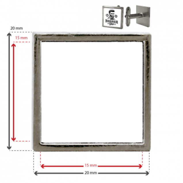 Caractéristiques et dimensions des boutons de manchette photo carré :